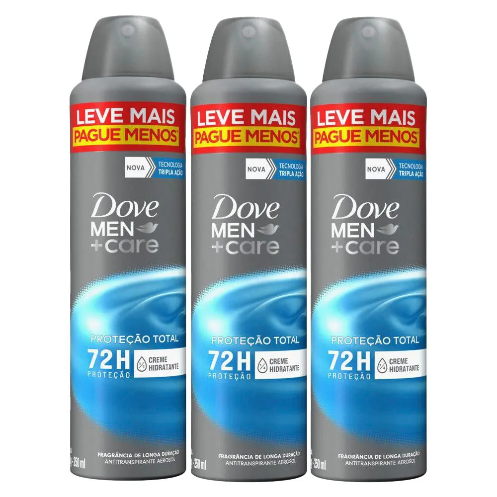 Kit com 3 Desodorantes Antitranspirantes Aerosol Dove Men+Care Proteção Total 250ml