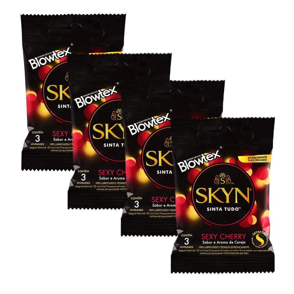 KIT 4 PACOTES PRESERVATIVO SKYN SEXY CHERRY C/ 3 UNIDADES CADA