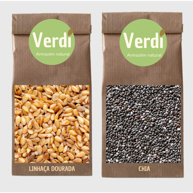 Kit sementes com omega 3 500g- chia e semente de linhaça dourada