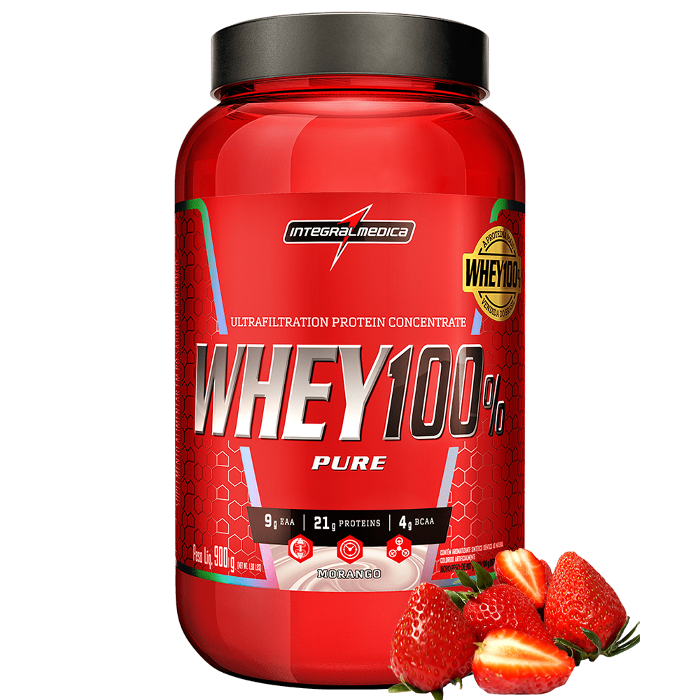 WHEY 100%PURE 900G POTE INTEGRALMEDICA MORANGO