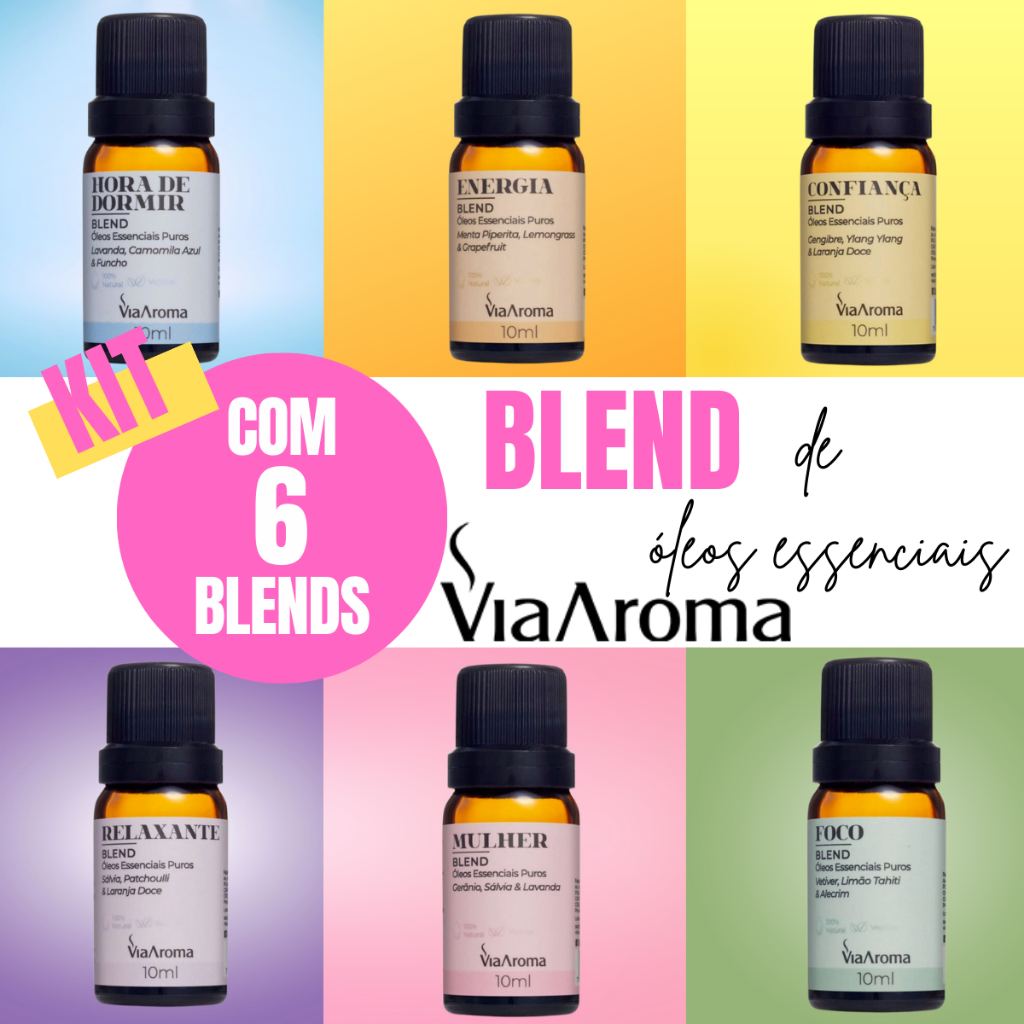 Kit Blend de Óleo Essencial Aromaterapia Via Aroma 100% Natural Vegano