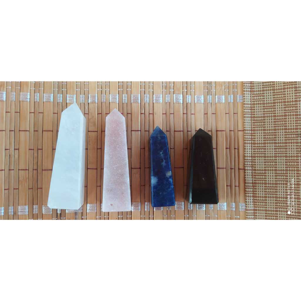 Kit Obeliscos Quartzo branco,Ametista Rosa,Obsidiana e Sodalita 6 a 8 Cm