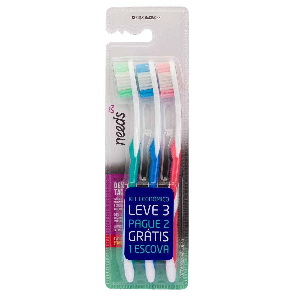 Escova de Dente Needs Oral Care Macia com 3 unidades