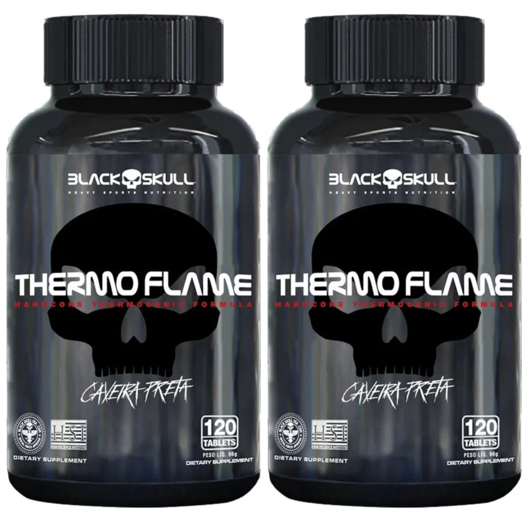 Thermo Flame 120 Caps Termogênico Black Skull Kit 2 Potes
