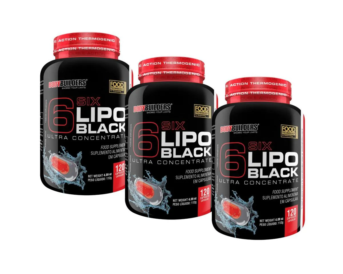 KIT 3X SIX 6 LIPO BLACK 120 CáPSULAS - BODYBUILDERS