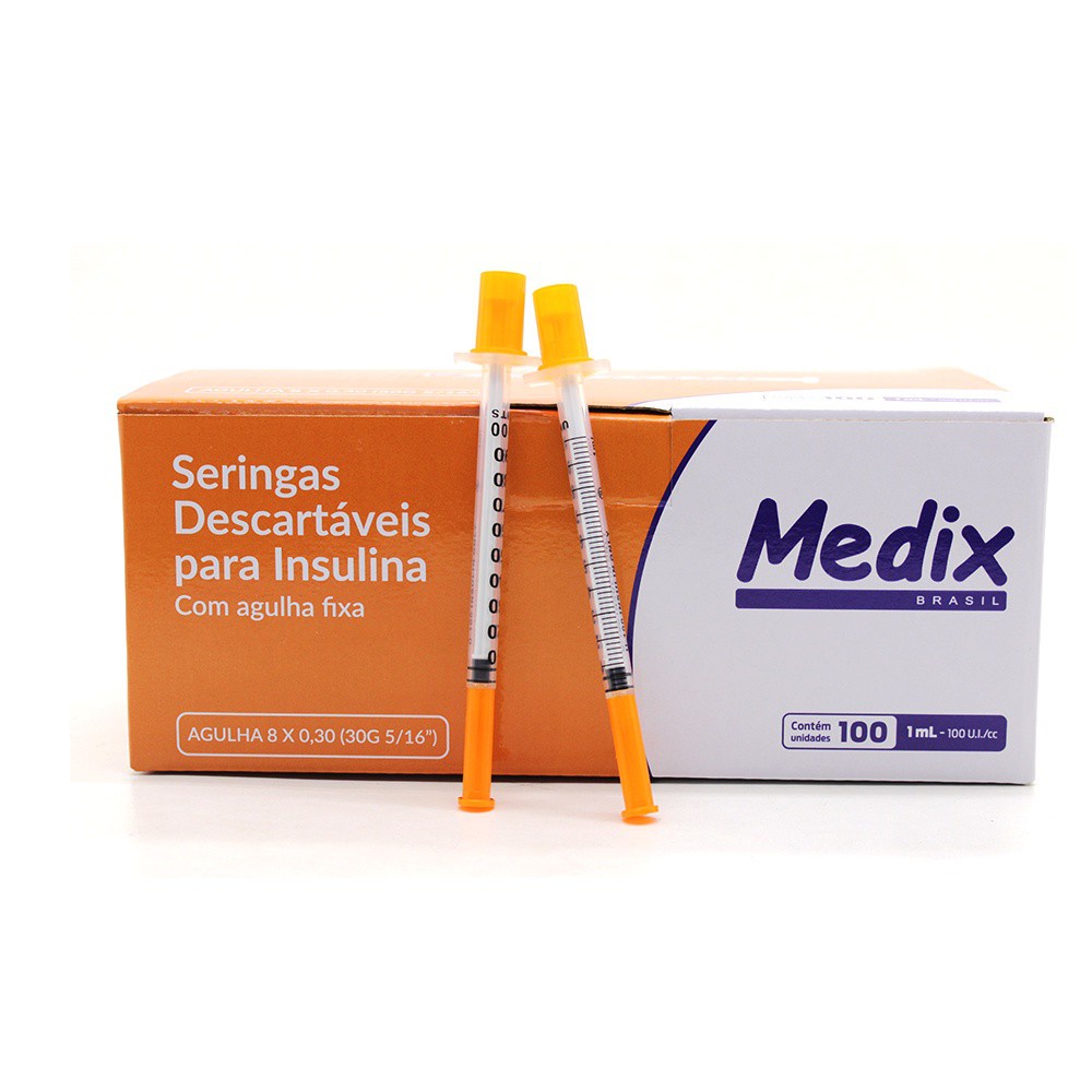 Seringa de Insulina 1ml c/ Agulha Fixa 8x0,30 30G - Cx c/100