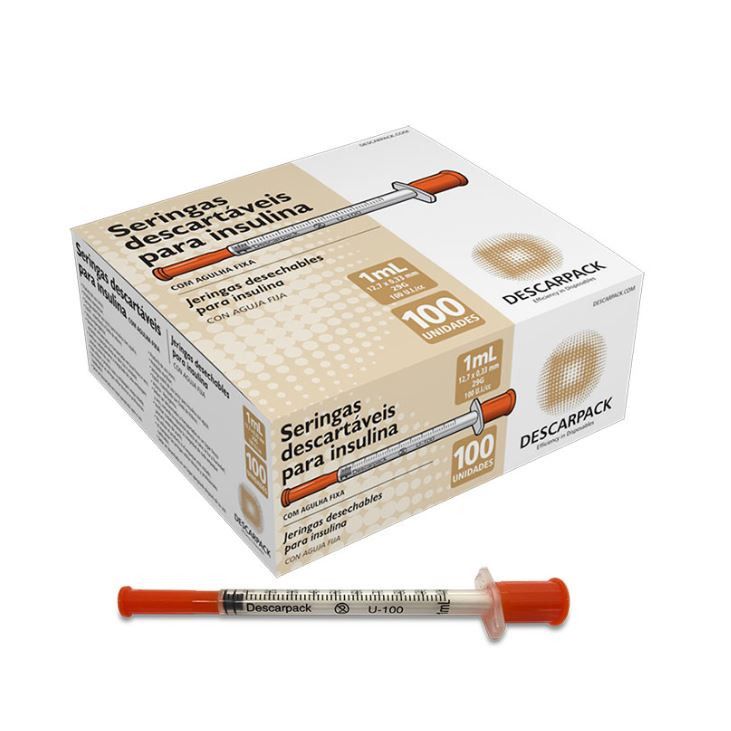 SERINGA COM AGULHA PARA INSULINA 100 UNIDADES 1ML 13 X 0,45MM DESCARPACK