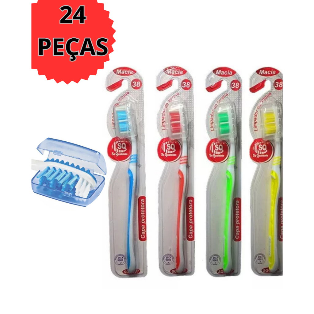 Kit Escova de Dente Adulto 38 Pacote 24 Pçs Higiene Bucal Cuidado Dental Macia Limpeza Oral Saudável