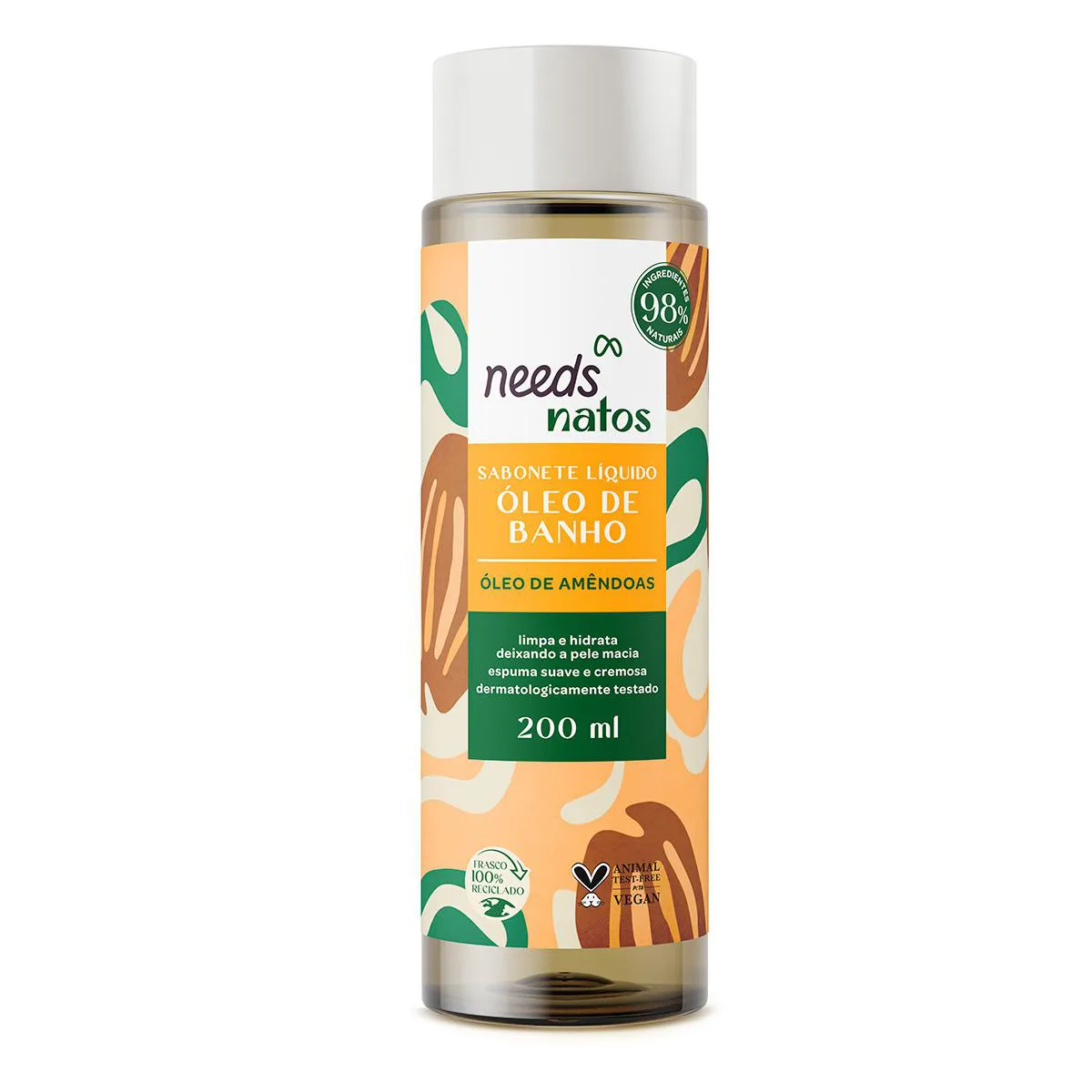 Sabonete Líquido Óleo de Banho Vegano Needs Natos Óleo de Amêndoas 200ml