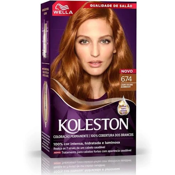 Tinta De Cabelo Kit Koleston Cor Louro Escuro Acobreado 674 Wella