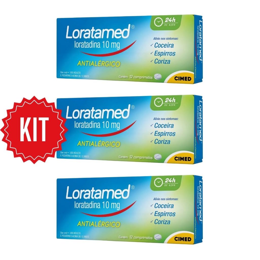 KIT COM 3 LORATAMED COM 12 COMPRIMIDOS ANTIALÉRGICO CIMED
