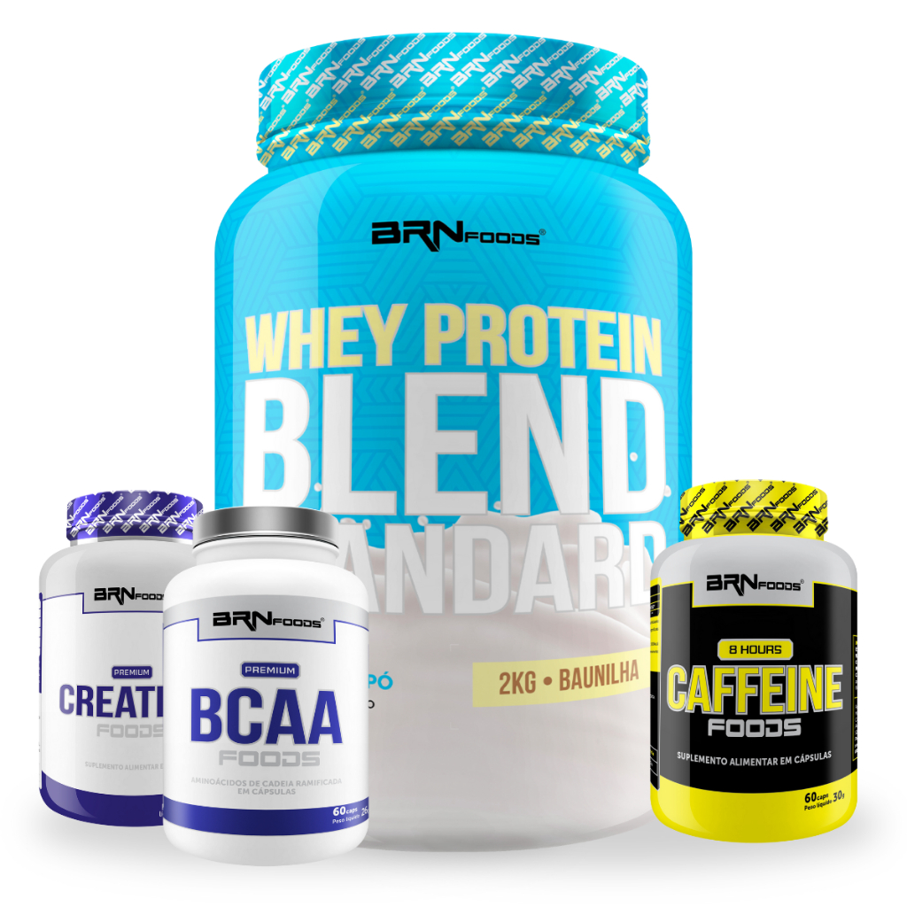 Kit Whey Protein Blend 2kg + Creatina 300g + Bcaa 60 Cáps + Cafeina 8 Hours 60 cáps - BRN Foods