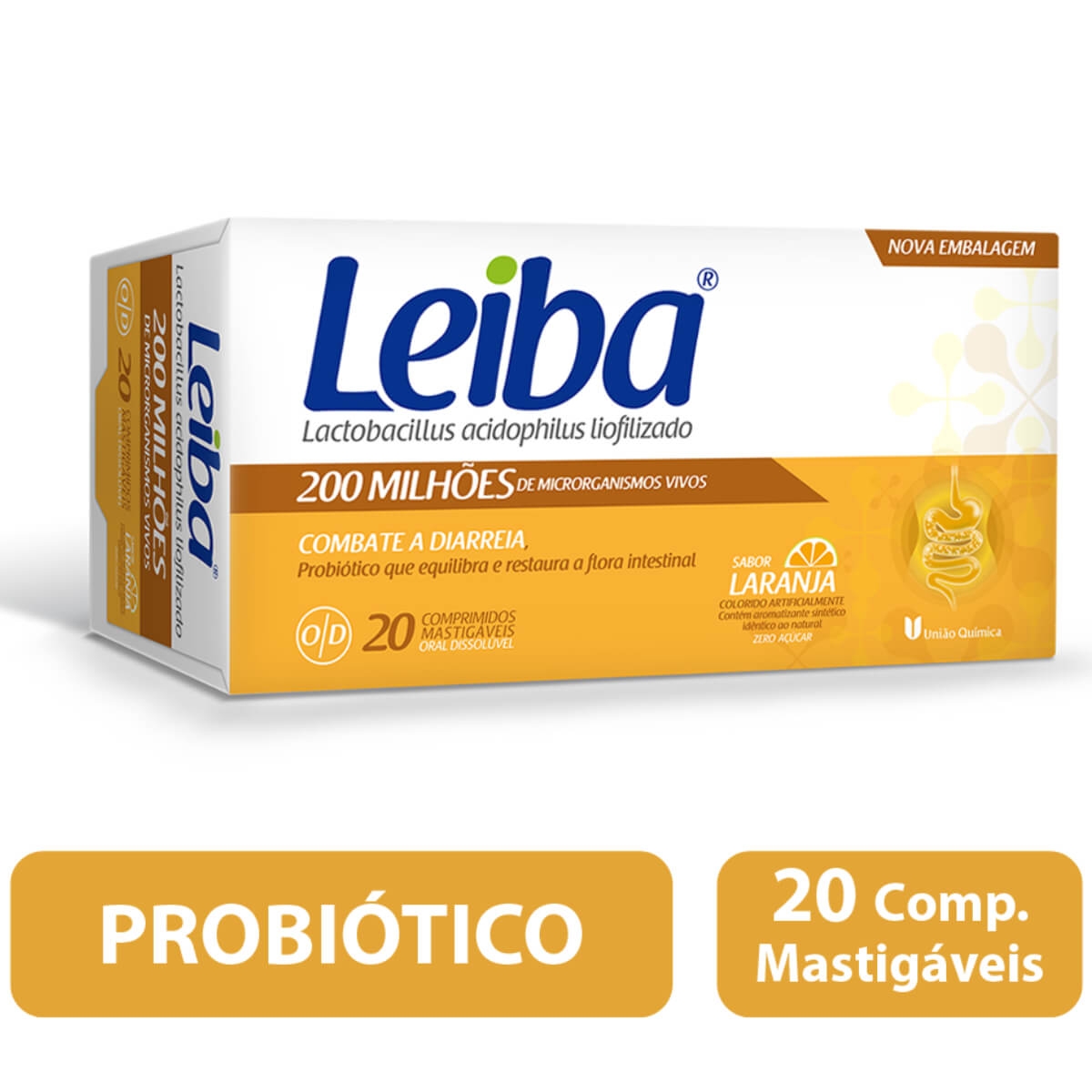 Leiba 200MI Probiótico Sabor Laranja com 20 comprimidos mastigáveis