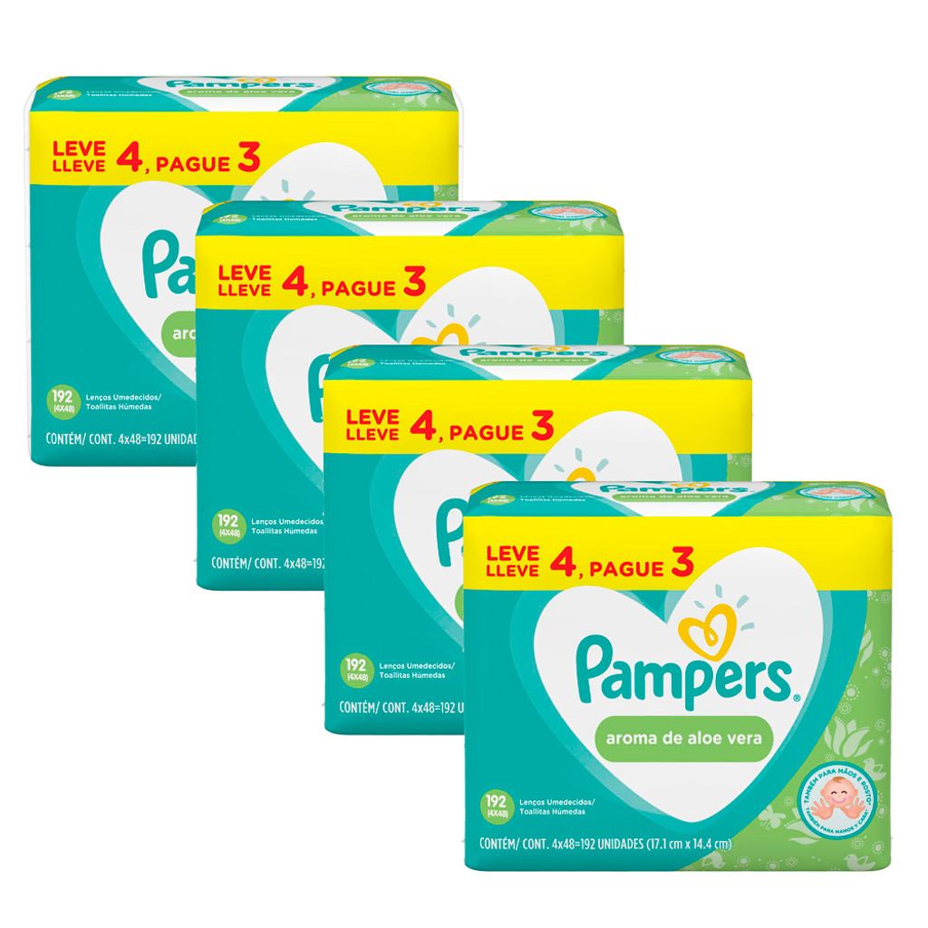 Kit 4 Lenços Umedecidos Pampers Aroma de Aloe Vera 192 Unidades