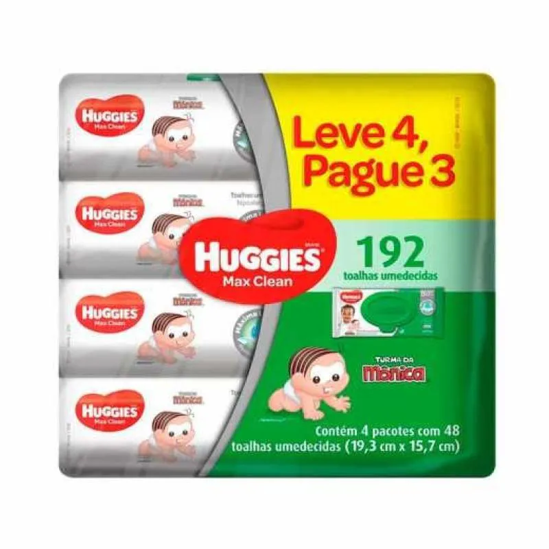 Kit Lenço Umedecido Huggies Disney Baby Max Clean Proteção Natural Com Aloe Vera Hipoalergênico Sem Álcool 48 Unidades 4 Pacotes