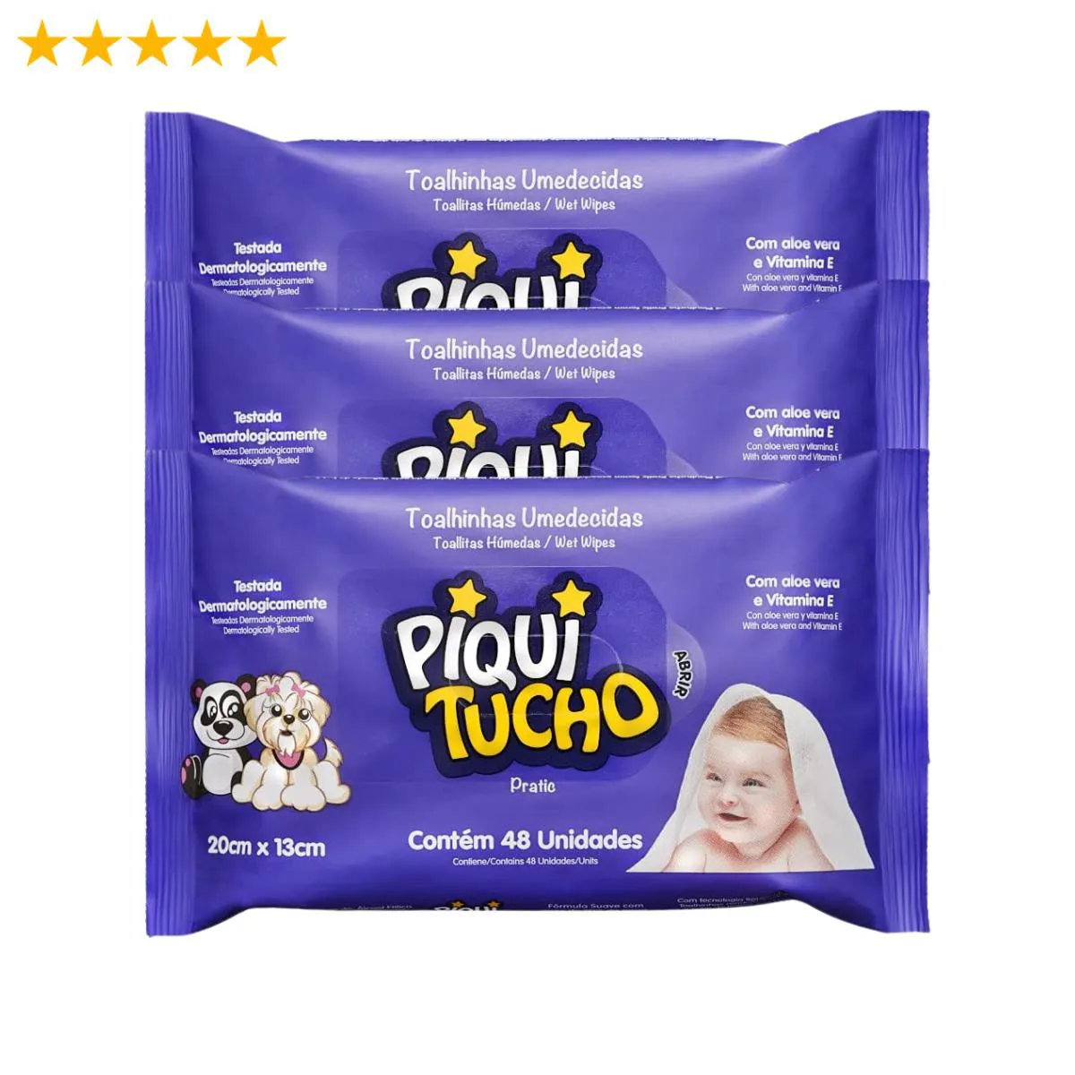 Kit Lenço Umedecido Piquitucho Pratic Aloe Vera e Vitamina E 3 Pacotes de 48 Unidades