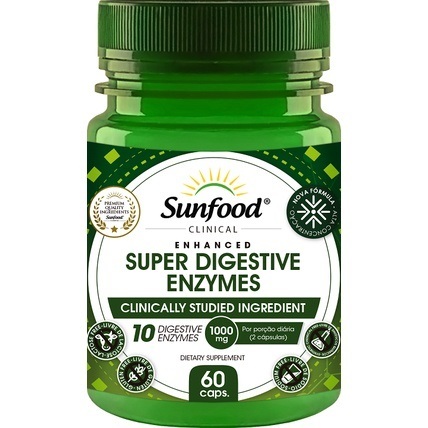 Super Digestive Enzymes 60 cápsulas Sunfood Clinical - Reduz azia e prisão de ventre