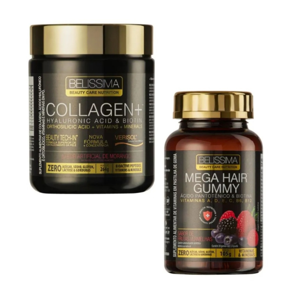 Kit 1x Collagen Plus 264g + Mega Hair Gummy 30 gomas - Belíssima
