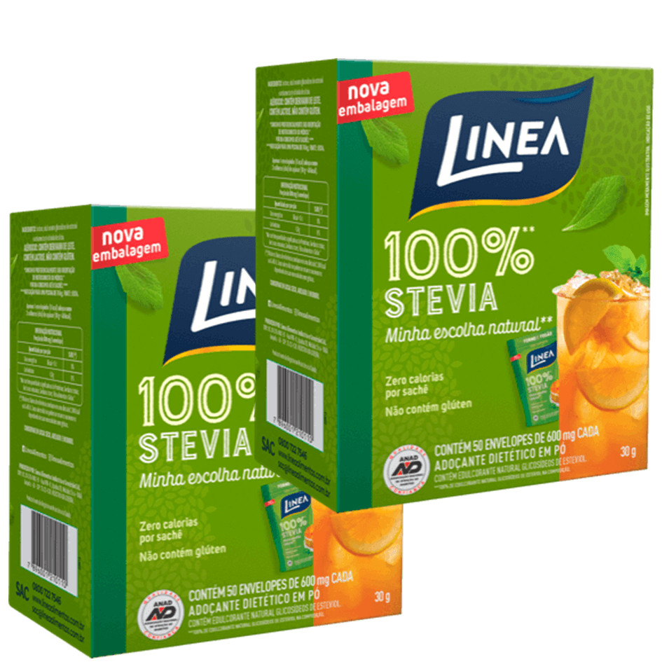 KIT 2 Adoçante Em Pó 100% Stévia Caixa 25g 50 Saches - Linea