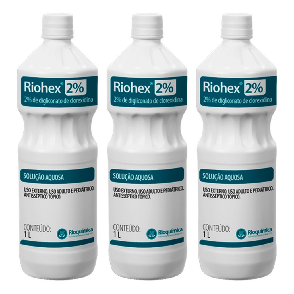 Kit C/3 Antisseptico Solucao Aquosa Clorexidina 2% Riohex 1l