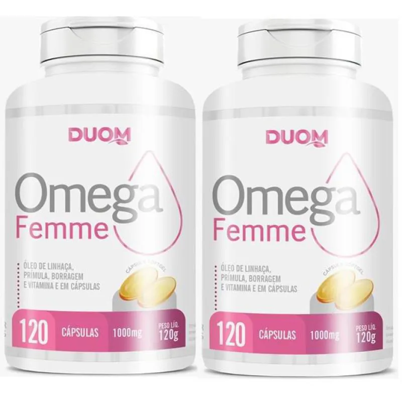 OMEGA FEMME - ÓLEO DE PRÍMULA, ÓLEO DE BORRAGEM, ÓLEO DE LINHAÇA COM VITAMINA E 120 CÁPSULAS - DUOM
