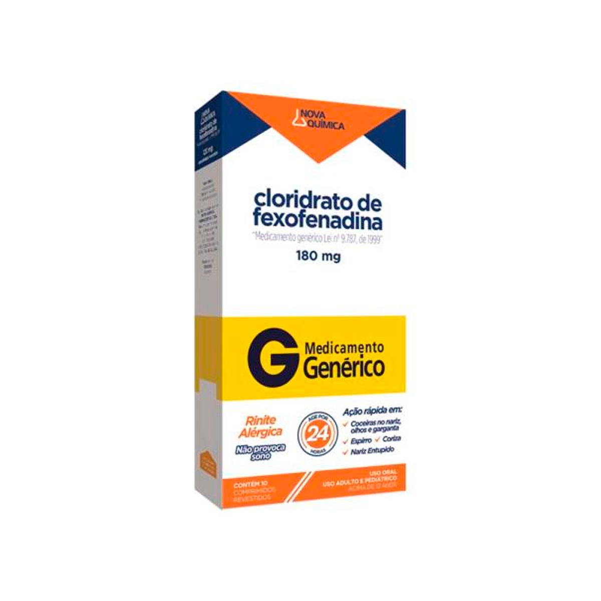 Cloridrato de Fexofenadina 180mg 10 comprimidos Nova Química Genérico