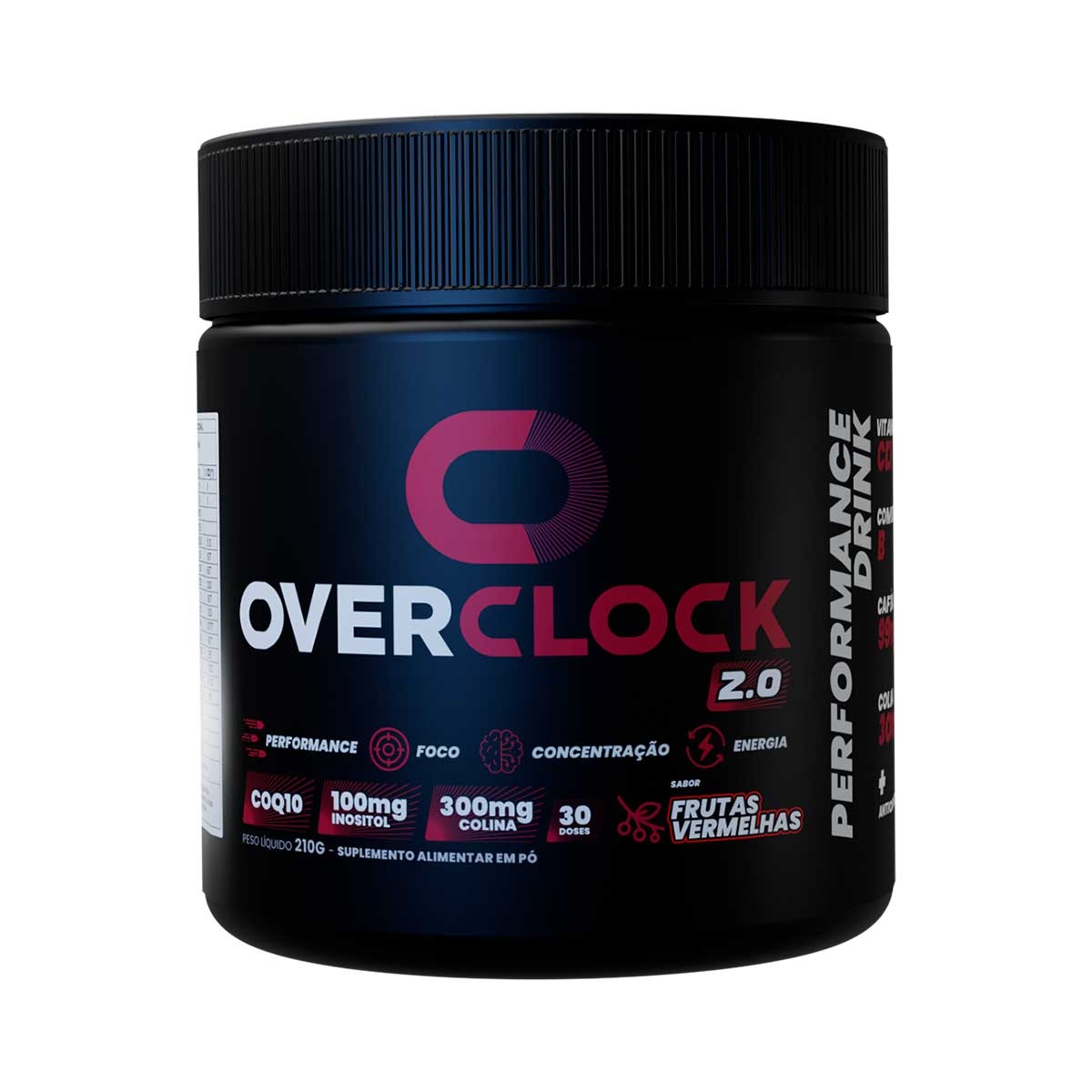 Suplemento Alimentar Overclock 2.0 Frutas Vermelhas 210g pote 30 doses