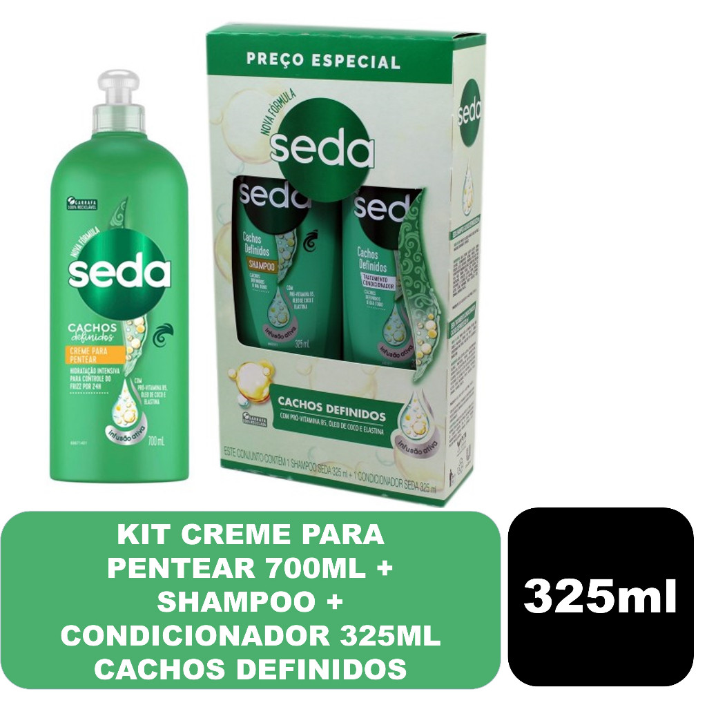 Kit Shampoo Seda Cachos Definidos 300ml + Condicionador 190ml + Creme Pentear 700ml