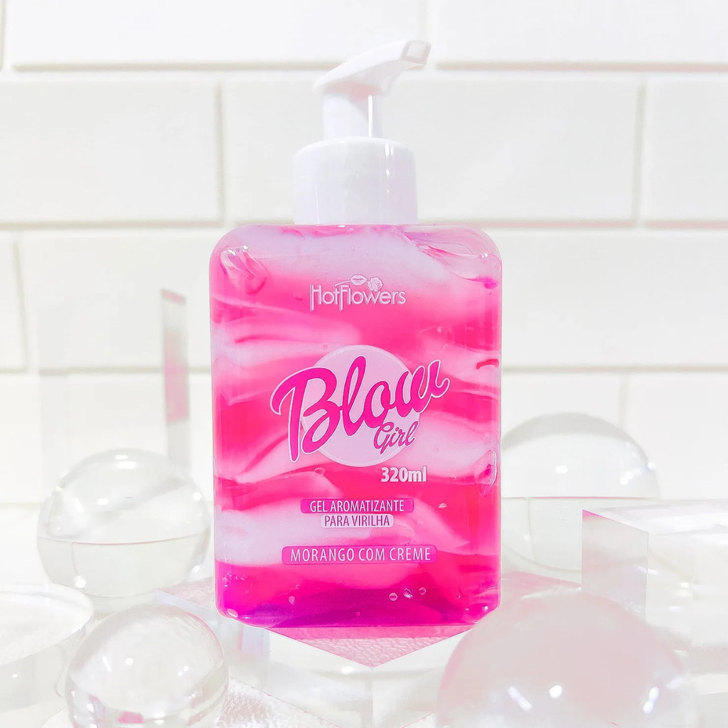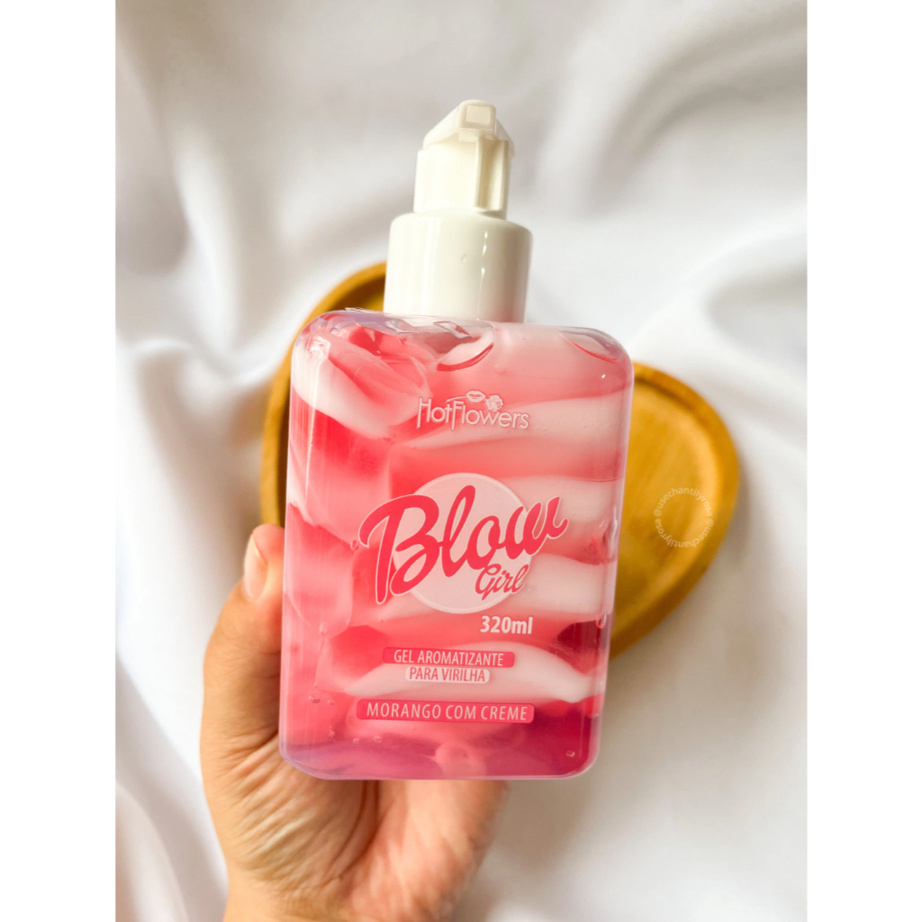 Blow Girl Gel Aromatizante Beijável Para Virilha Morango com Creme 320ml Original Hidratante Corporal