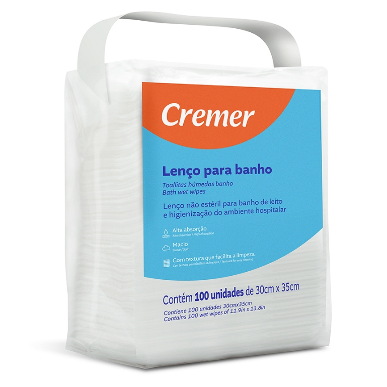 Lenço para Banho e Higiene Cremer com 100 Unidades