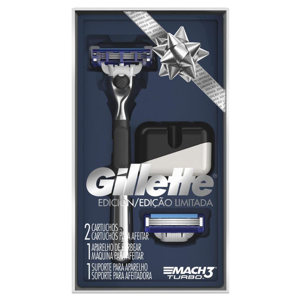 Kit Aparelho de Barbear Gillette Mach 3 Turbo Edição Especial + 2 Cargas + Suporte