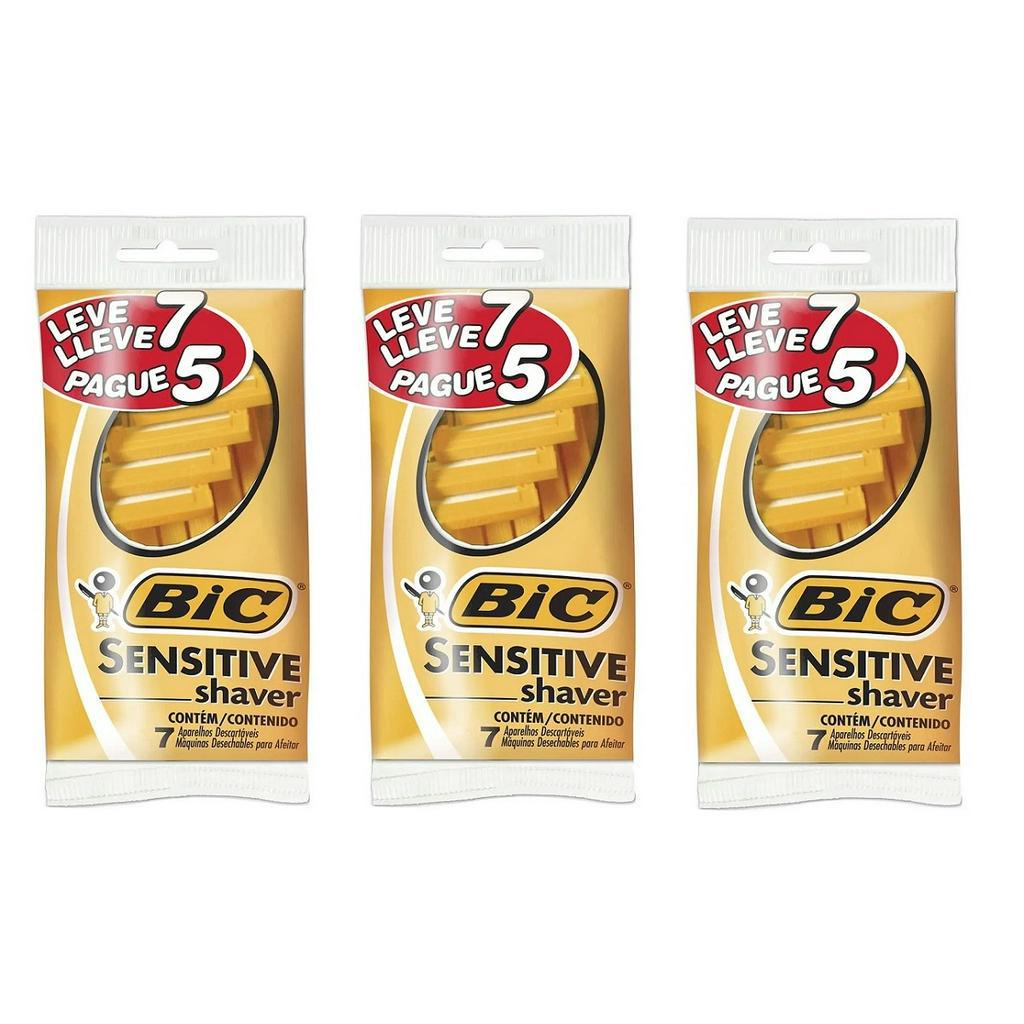 Kit 21 Un - Aparelho de Barbear BIC Sensitive Shaver, Cabo Antideslizante, Barbeador, Leve 7 Pague 5 Unidades