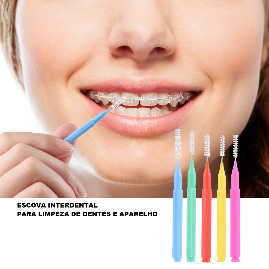 Escova de Dente Interdental Extrafina Cilíndrica Limpa Aparelho Dental kit com 5 unidades