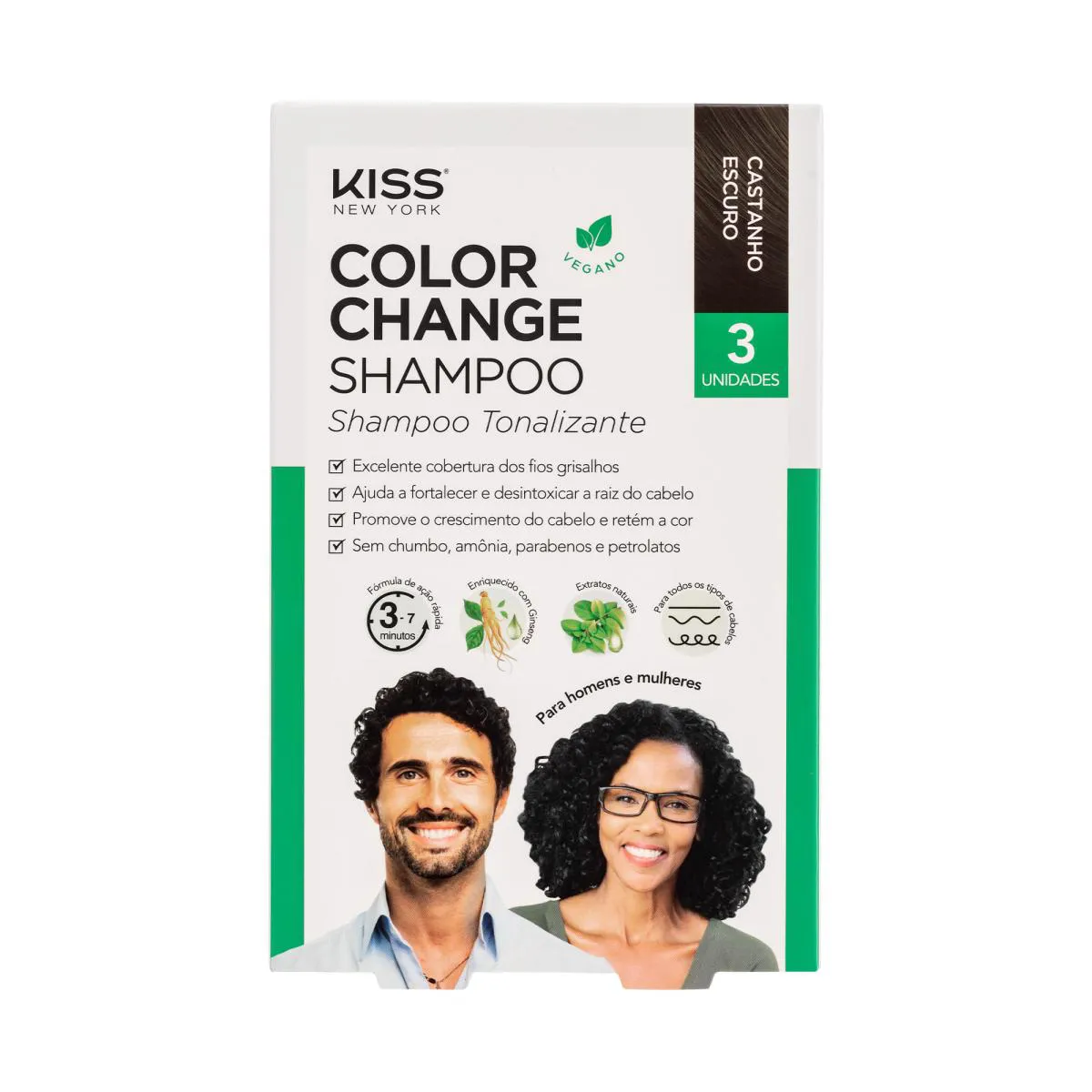 Shampoo Tonalizante Kiss New York Color Change Castanho Escuro - 3 Unidades