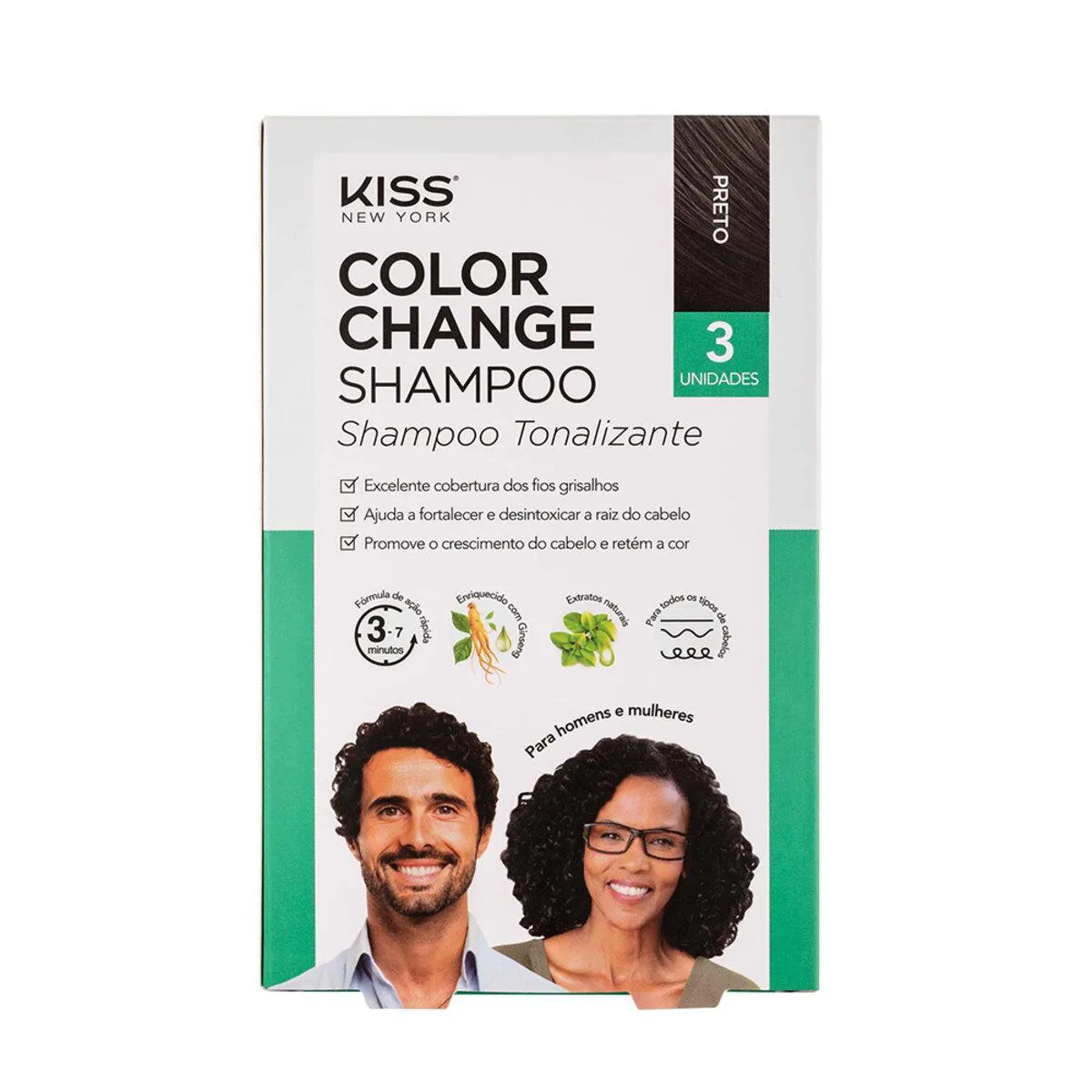 Shampoo Tonalizante Kiss New York Color Change Preto - 3 Unidades
