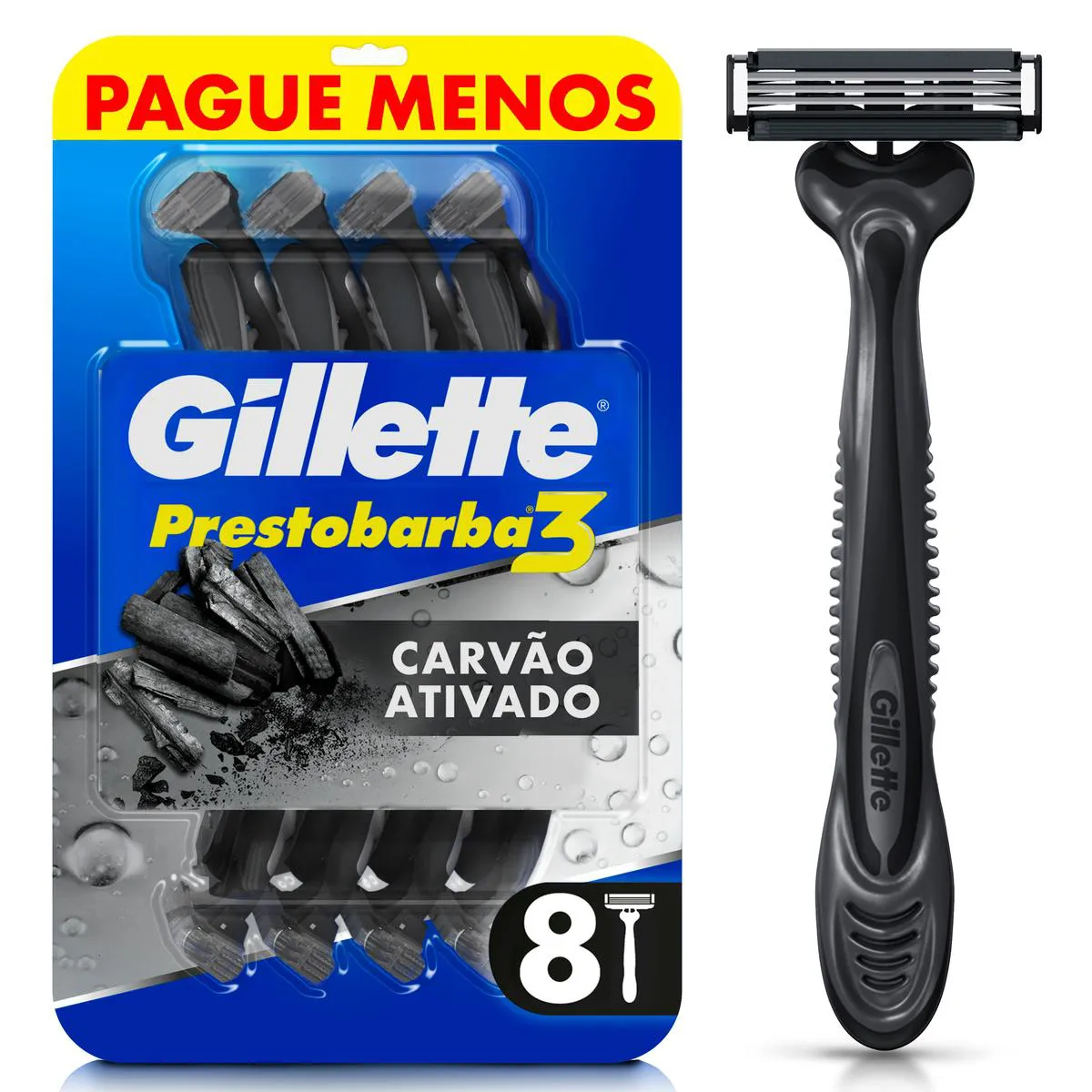 Aparelho de Barbear Descartável Gillette Prestobarba 3 Carvão Ativado 8 unidades