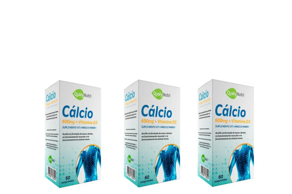 KIT C/3 CáLCIO 600MG + VIT D3 C/60 CáPSULAS - QUALY NUTRI