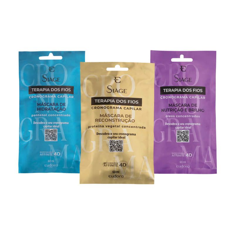 Cronograma Capilar Siàge Terapia dos Fios Máscara Capilar: Reconstrução 60ml / Hidratação 60ml / Nutrição 60ml (Opte por individual ou o kit com 4 sachês)