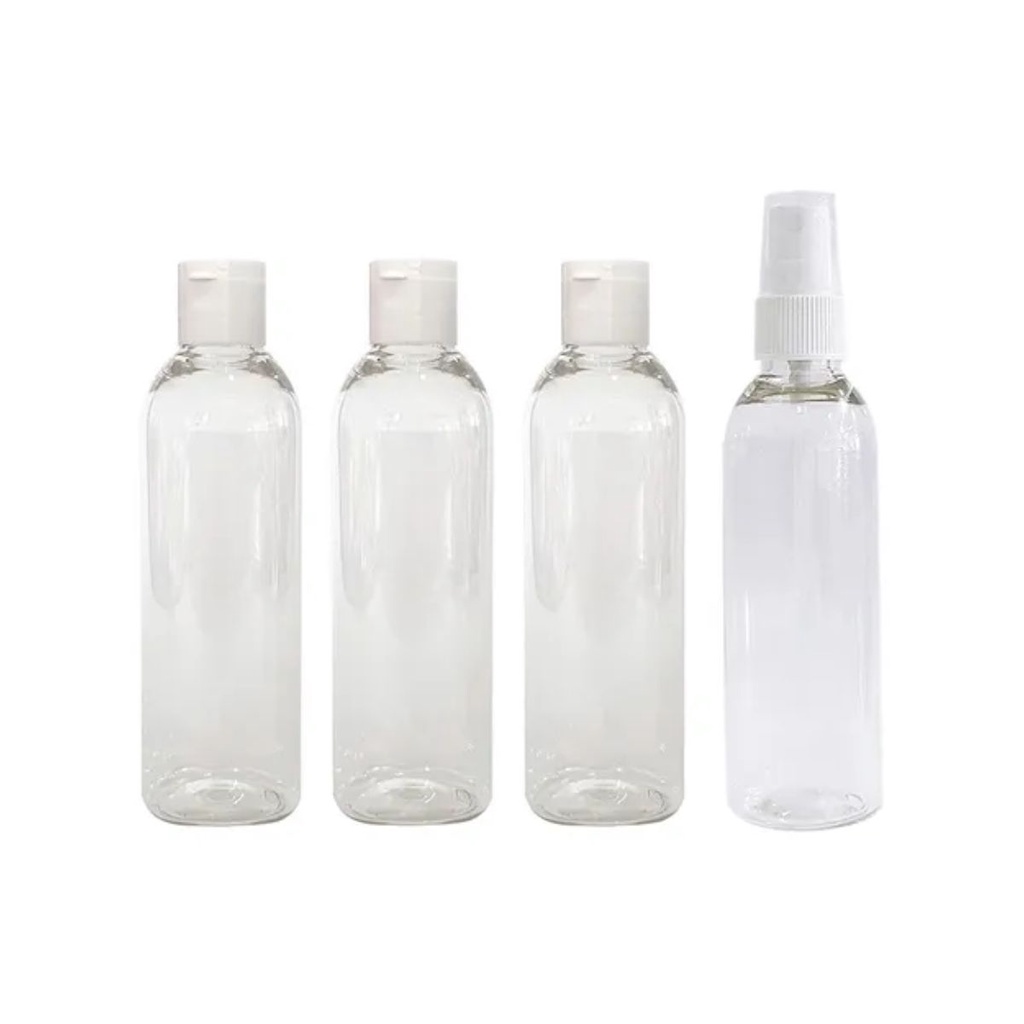 Kit 3 Frascos Viagem Shampoo Creme Sabonete + 1 Spray 100ml