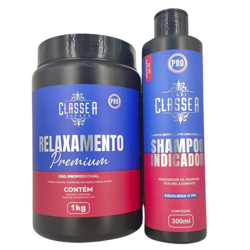 Kit Relaxamento Premium 1Kg + Shampoo Indicador Neutralizante 300ml - Alisamento Americano Hidróxido de Sódio