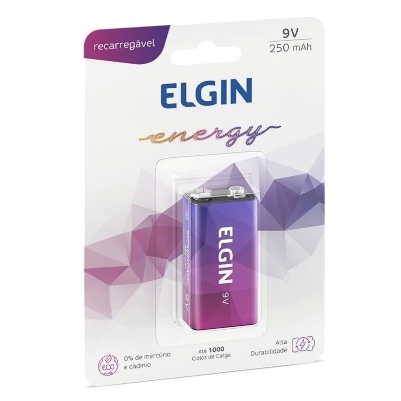 01 Pilha Bateria 9v Recarregavel Elgin 250mAh 9 Volts 1 Cartela