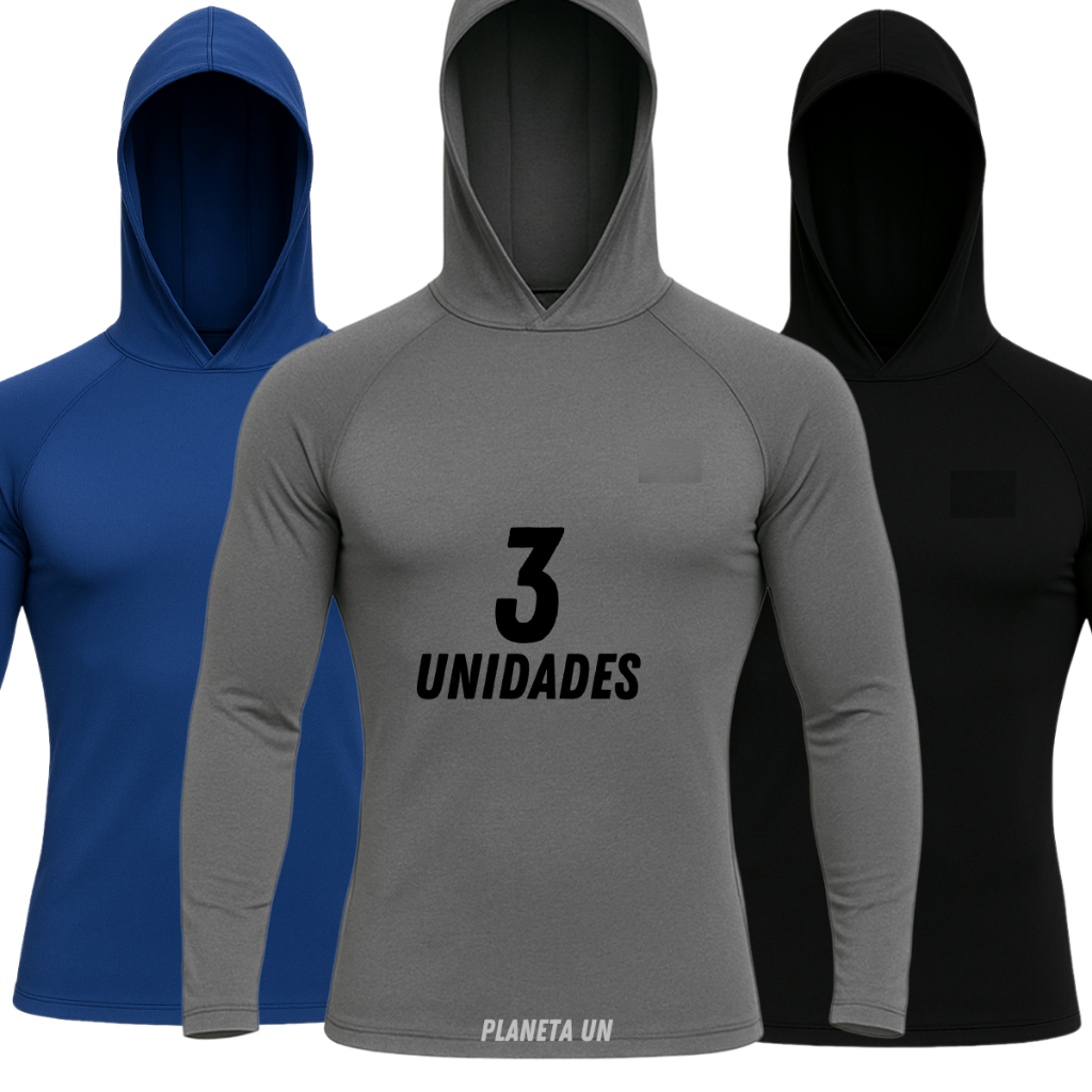 KIT 3 CAMISA DE CAPUZ TÉRMICA UV50+ MANGA LONGA DRY FIT UNISSEX PROTEÇÃO SOLAR PRAIA PESCARIA