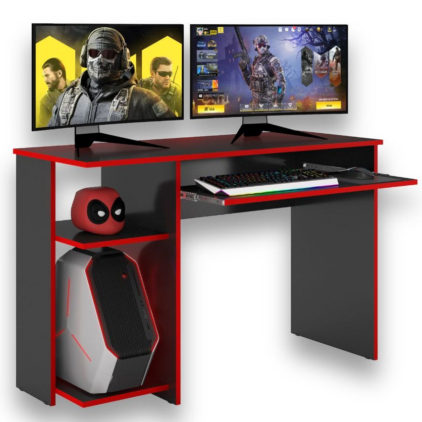 Mesa Gamer Escrivaninha Para Computador Home Office Nicho Cpu 3 Prateleiras Quarto - Preta E Vermelha