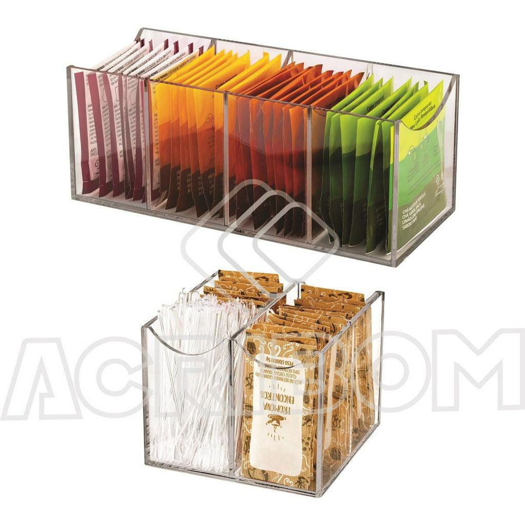 Kit Porta Sachês de Chá + Porta Sachês de Açúcar Sem Tampa em Acrílico Cristal - Acribom