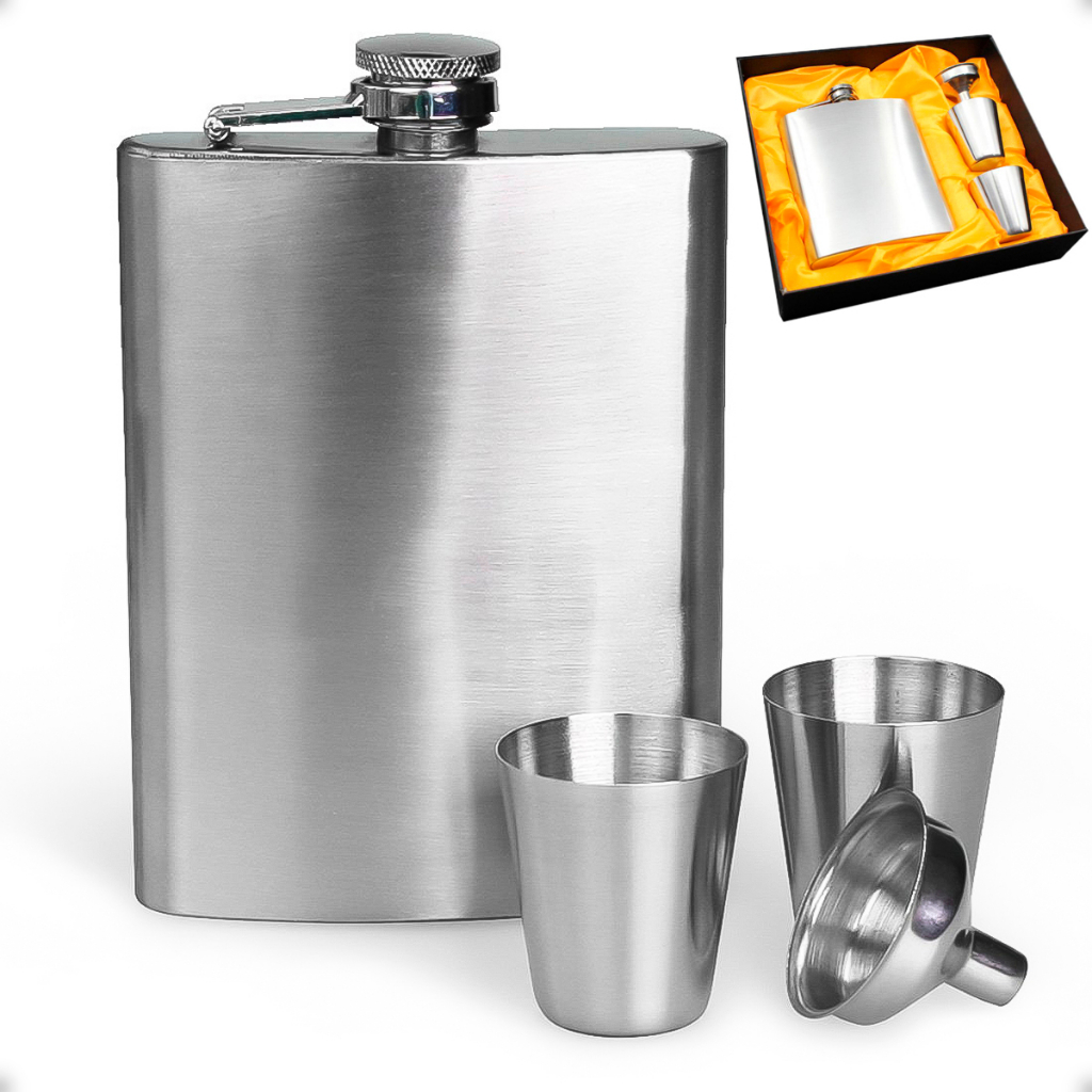 Cantil Garrafa de Bebida Portátil Inox Whiskeira Wisk Vodka 2 Copo 1 Funil