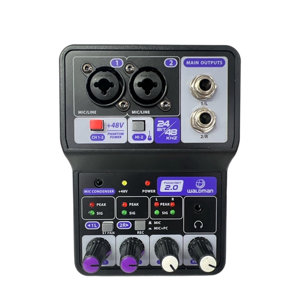 Mesa de Som Waldman 2 Canais e Interface Podcast 2.0 Usb
