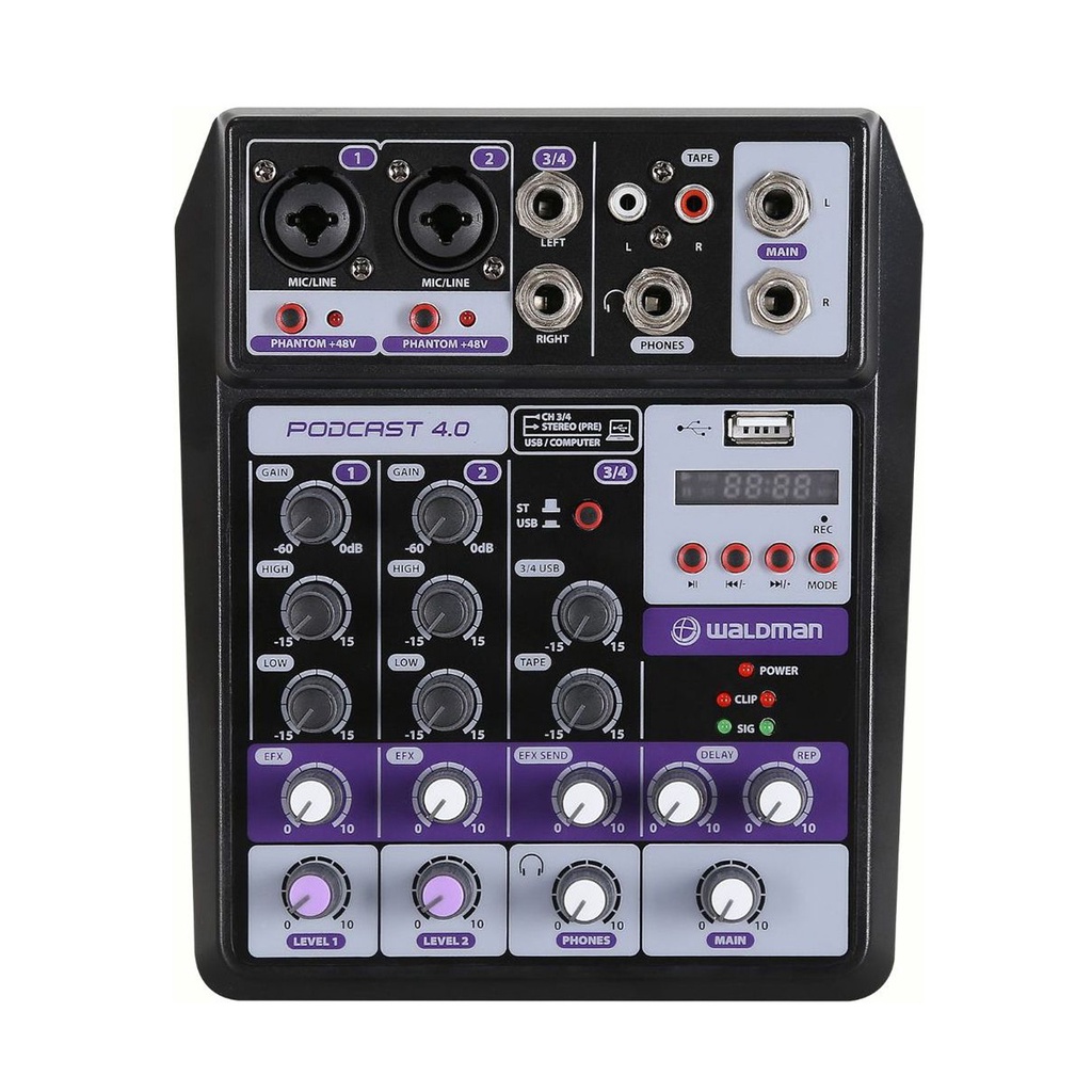 Mesa de Som Waldman 4 Canais Podcast 4.0 Mixer Interface