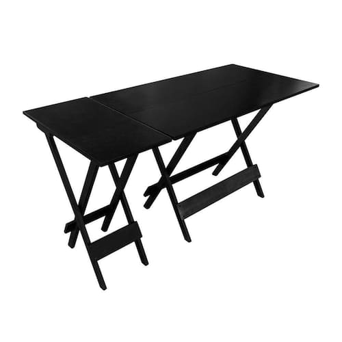 Conjunto De Mesa Dobrável 120X70 Em Madeira Maciça Com Mesa Aparador - Preto - Preto
