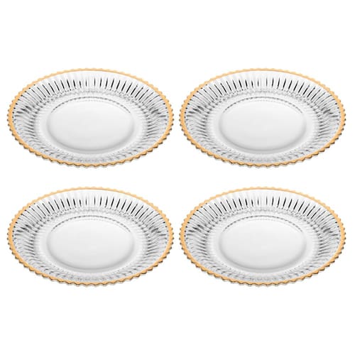 Conjunto de 4 Pratos Sobremesa de Cristal com Fio de Ouro Imperatriz 20cm - Wolff
