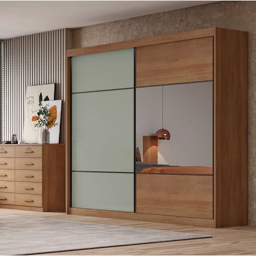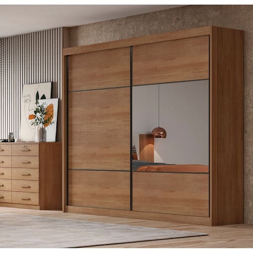 Guarda Roupa Casal com Espelho 2 Portas 6 Gavetas - Mônaco-Cumaru - Móveis Novo Horizonte
